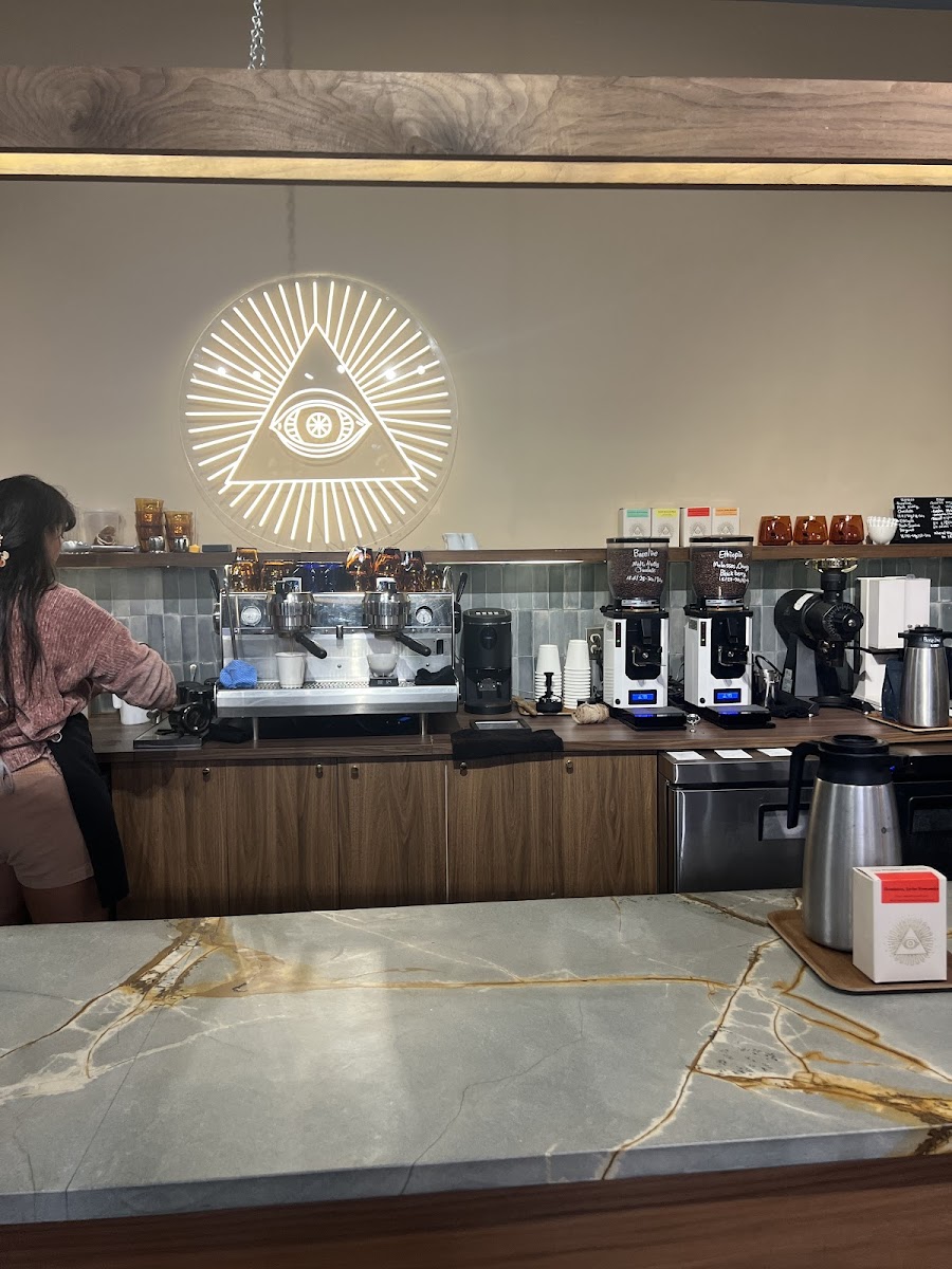 As you step inside, you're greeted by a contemporary yet cozy setting that's designed for comfort. The minimalist decor, coupled with soft lighting, creates an inviting atmosphere perfect for both social gatherings and solitary coffee contemplation. The smell of fresh coffee brewing wafts through the air, beckoning you to indulge.